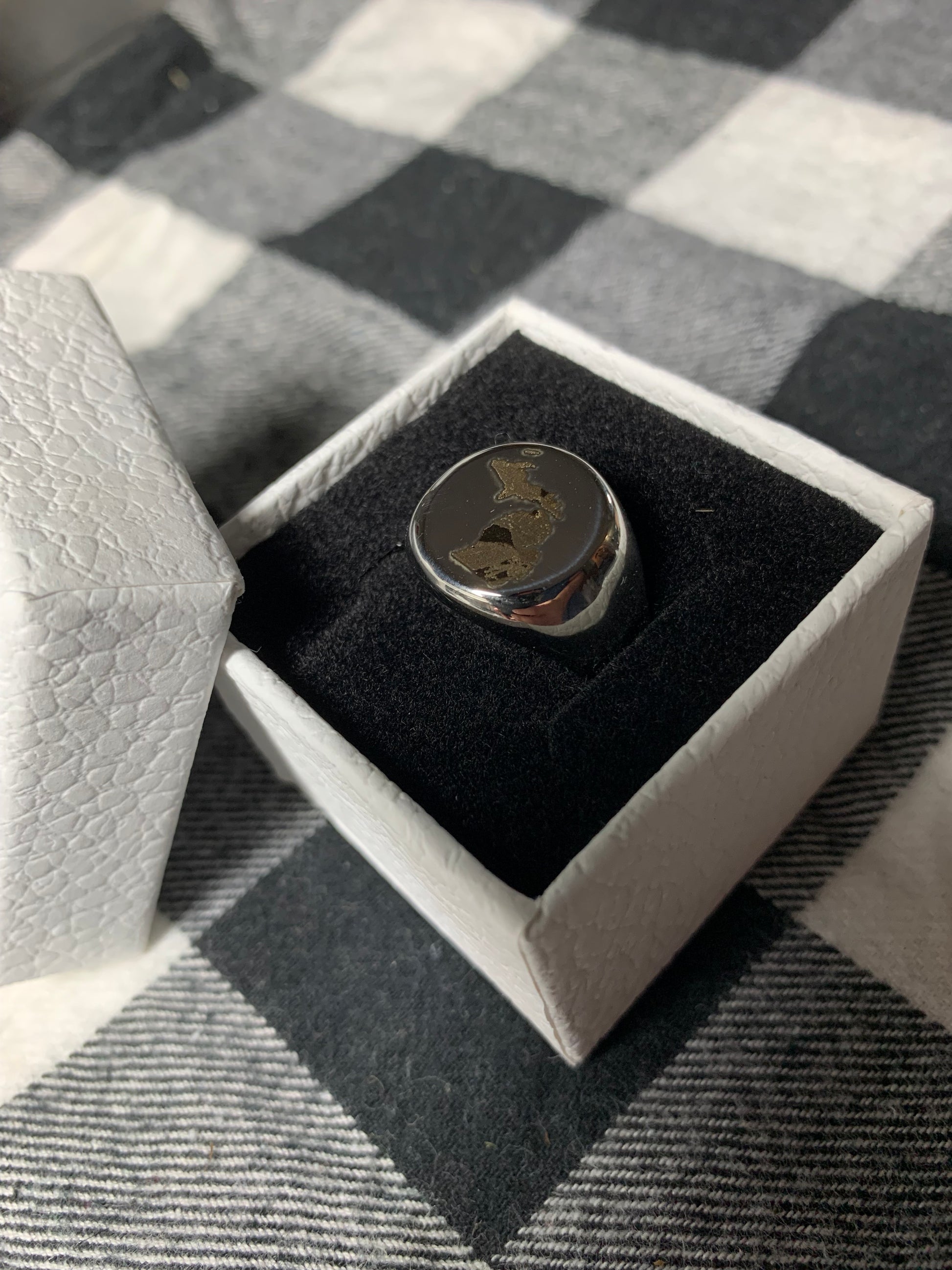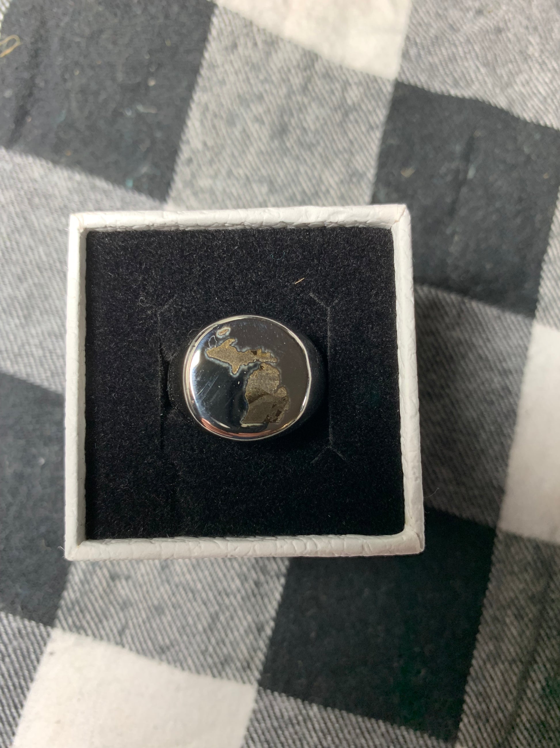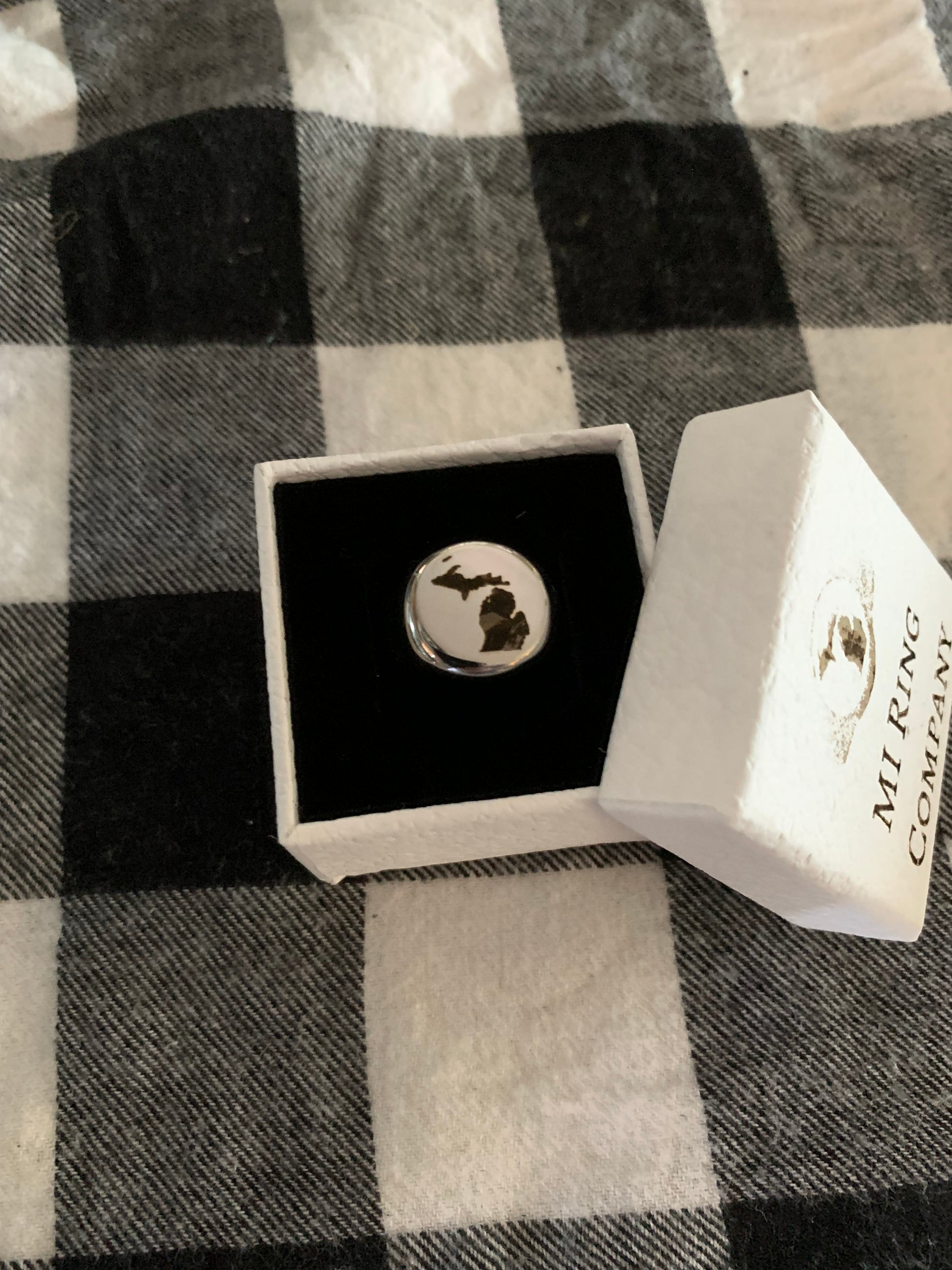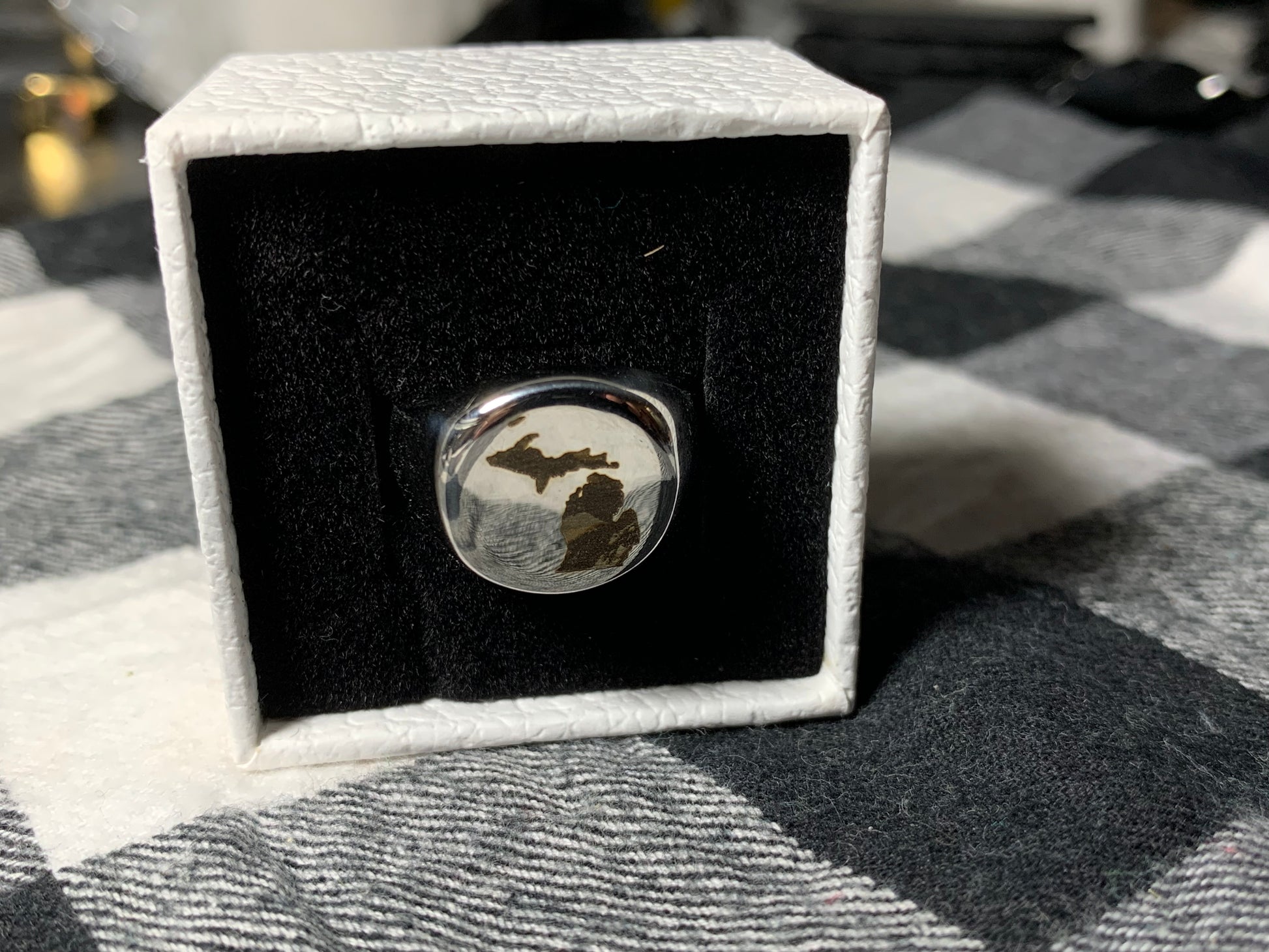 This polished stainless steel signet ring features a precision-engraved Michigan silhouette—both peninsulas, one bold identity. Sleek, round, and crafted for everyday wear or as a standout gift for any Michigander.